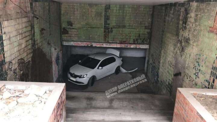 Неудачно припарковался: в Днепре в подземном переходе обнаружили разбитый Renault Logan
