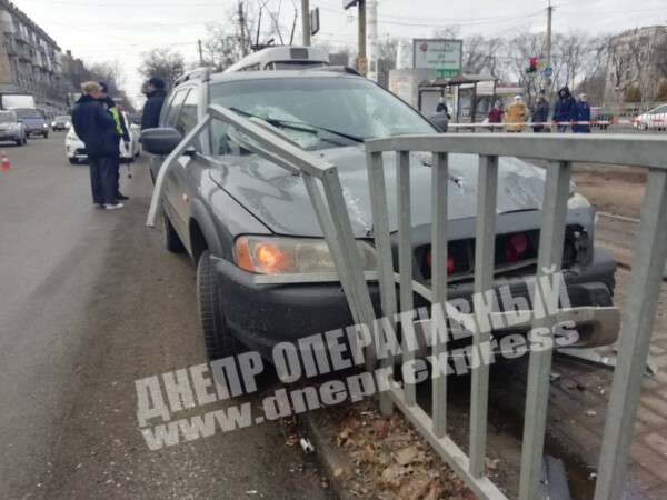 В Днепре BMW "подрезал" Volvo, спровоцировав ДТП: пострадала женщина-пешеход (фото)