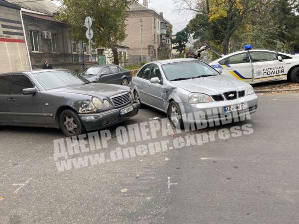 В Днепре Chevrolet не уступил дорогу Mercedes, из-за чего произошло ДТП: фото