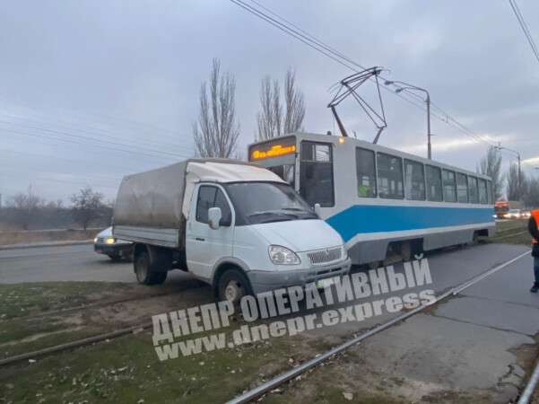 В Днепре на Донецком шоссе трамвай №19 врезался в грузовой автомобиль: фото