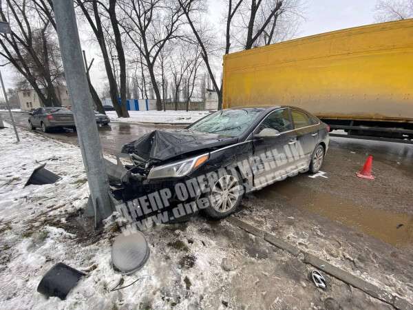 В Днепре на Энергетической Ford Focus столкнулся с Hyundai: одна из легковушек отлетела в столб
