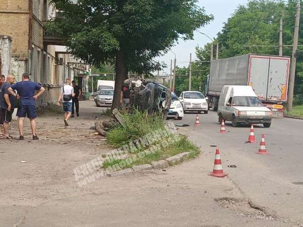 В Днепре на Любарского Mazda "зацепила" грузовик и перевернулась: пострадал водитель (фото)
