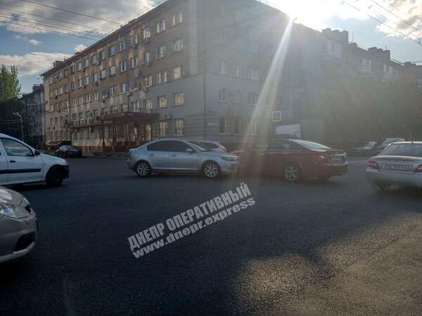 В Днепре на Набережной столкнулись Mazda и Hyundai: образовалась пробка (фото)