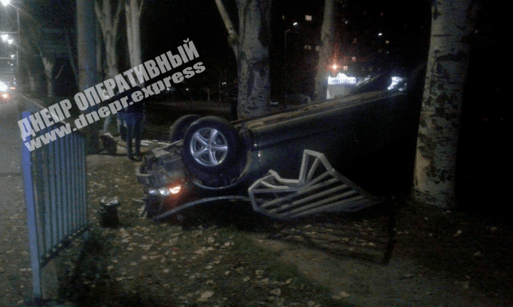 В Днепре на Набережной Заводской 16-летний парень не справился с управлением и врезался в ограждение: машина перевернулась