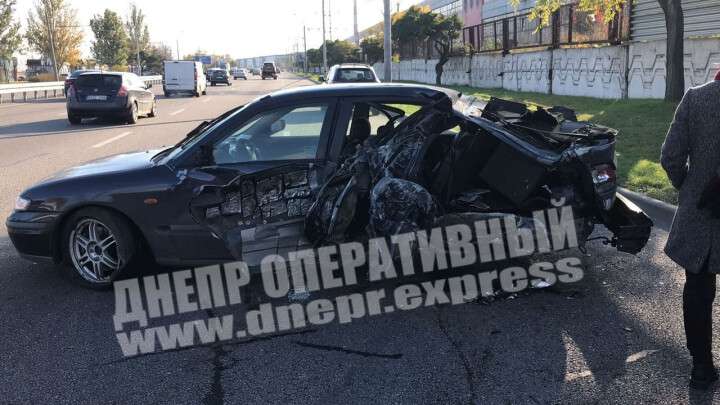 В Днепре на Набережной Заводской Mazda на скорости врезалась в столб: фото