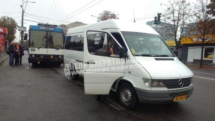 В Днепре на Паникахи троллейбус врезался в маршрутку: пострадала женщина