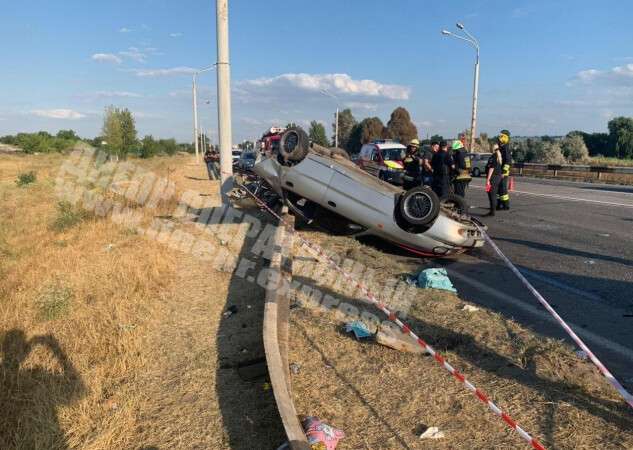 Инцидент произошел сегодня 9 августа на Полтавском шоссе. По предварительной информации, водитель Lanos не справился с управлением и вылетел на встречную полосу, врезался в отбойник и перевернулся. Водитель получил серьезные повреждения.