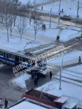 В Днепре на проспекте Мира трамвай протаранил ВАЗ: подробности