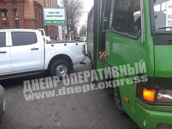 В Днепре на проспекте Яворницкого пикап врезался в автобус №118: фото