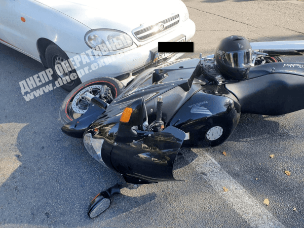 В Днепре на улице Богдана Хмельницкого Daewoo Lanos столкнулся с мотоциклом: фото