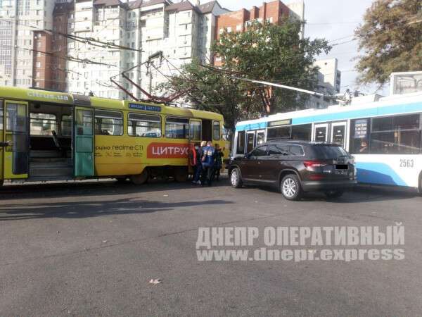 В Днепре сегодня, 16 октября, автомобиль Skoda врезался в трамвай. Сообщает "Днепр оперативный" с места события.
