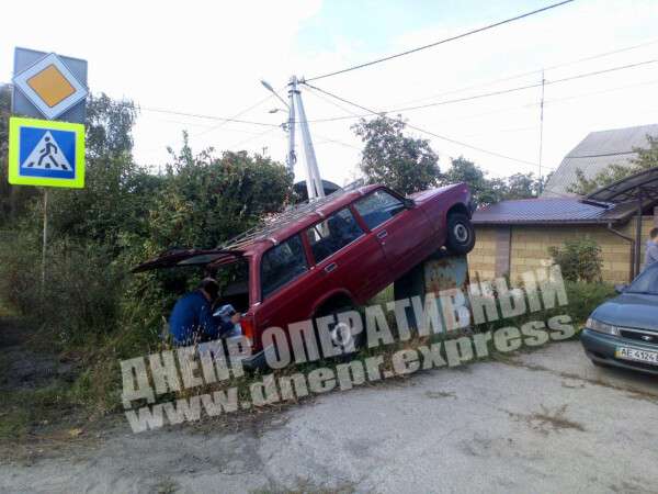 В Днепре на Воронежской ВАЗ "взлетел" на мусорный бак: подробности