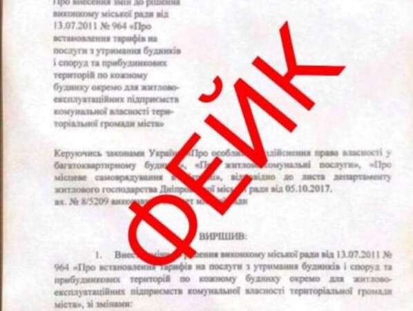 7 ноября поздно вечером в Днепре по соцсетям начали разгонять лживую информацию о повышении тарифов на квартплату. Некий Геннадий Бутенко, который называет себя великим активистом и поборником справедливости, опубликовал пост о повышении тарифов на квартплату в Днепре в 2 раза. Свои слова он «подкрепил» липовым решением исполкома Днепра, сообщает "Днепр оперативный" со ссылкой на "Наше Місто".