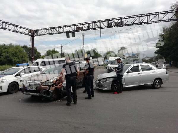В Днепре на улице Щепкина произошло ДТП: Subaru врезался в ВАЗ (фото)
