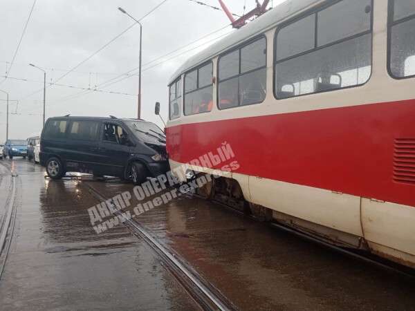 Жесткое ДТП с пострадавшими на Амурском мосту в Днепре: микроавтобус врезался в трамвай (фото)