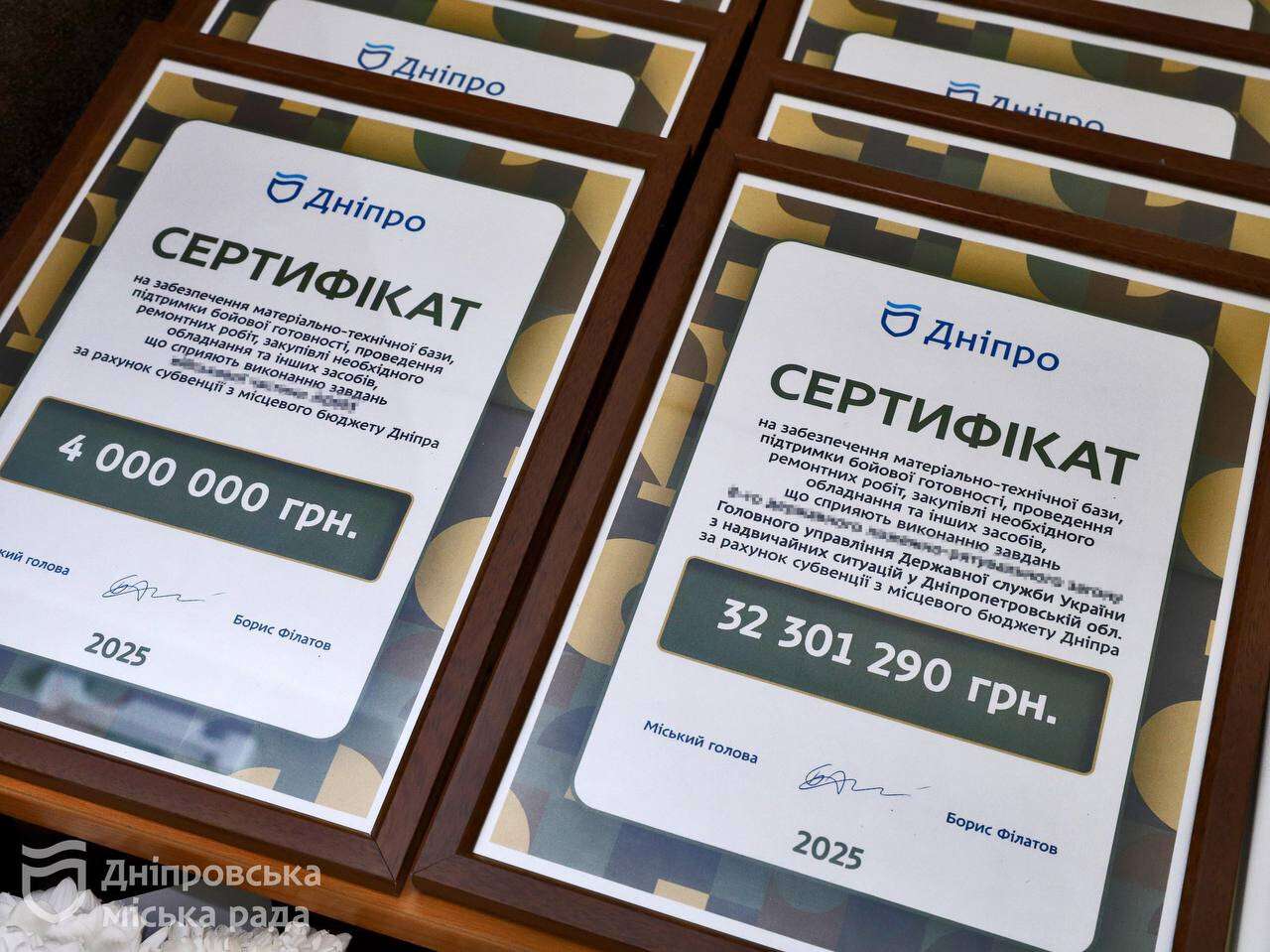 Также во время сессии было принято решение о выделении 32 млн грн для спасателей на приобретение уникального пожарного автомобиля. По словам начальника Днепровского районного управления ГСЧС, полковника Александра Бойко, это будет автолестница с автоцистерной. Он отметил, что высота её подъёма составляет 32 метра, а вместимость воды — 2 тонны.