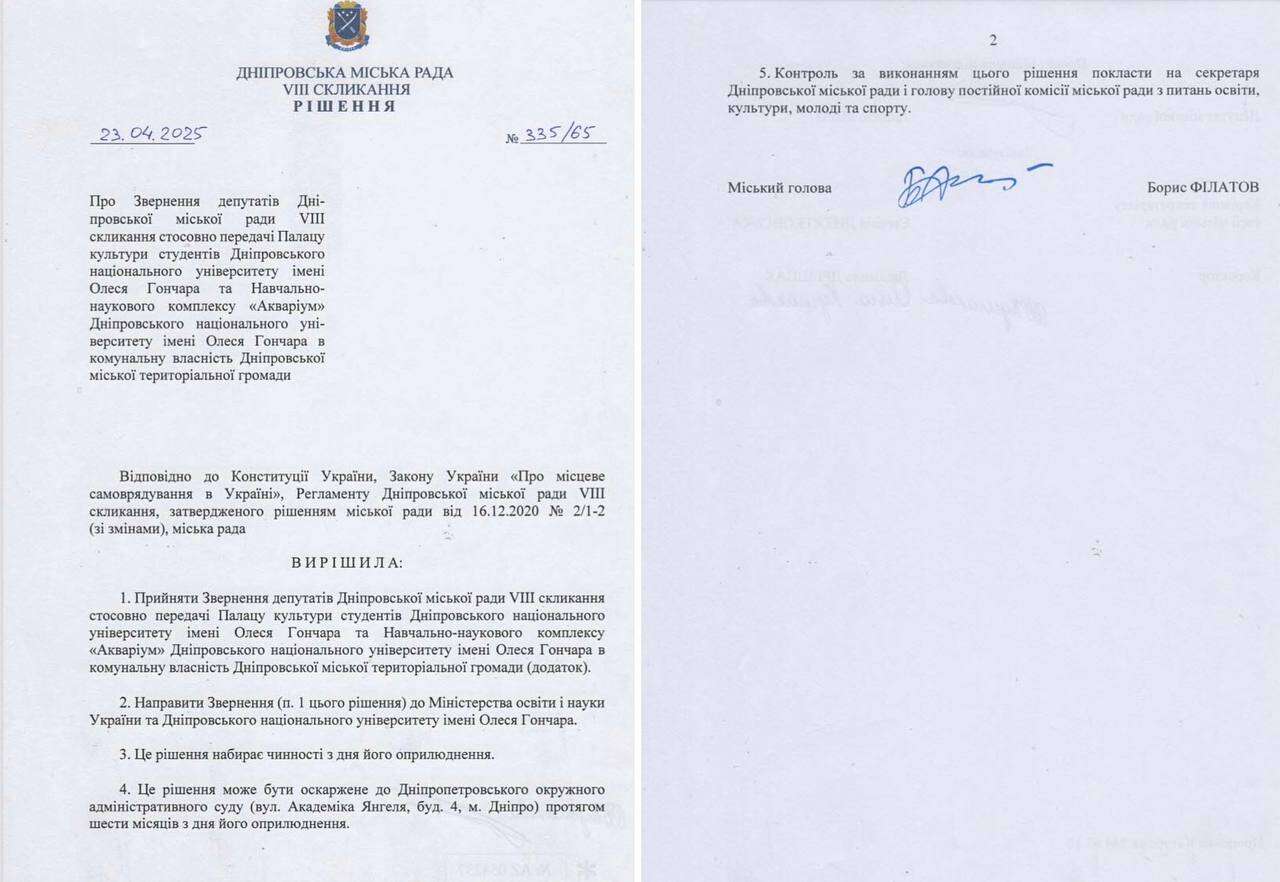 Нагадаємо, міська влада раніше зверталася до Міністерства освіти і науки України з проханням передати об’єкти, зокрема Палац студентів, у власність громади Дніпра для їхнього належного утримання та розвитку.