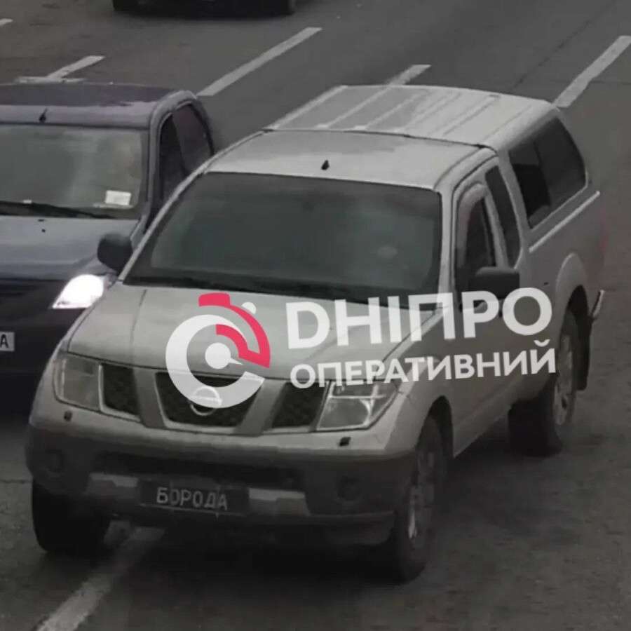 Так, в 6:20 утра на перекрестке улицы Донецкое шоссе и улицы Незламна (бывшая Петрозаводская) произошло дорожно-транспортное происшествие с участием автомобиля Nissan Leaf и внедорожника Nissan Navara с незарегистрированным номером «БОРОДА».