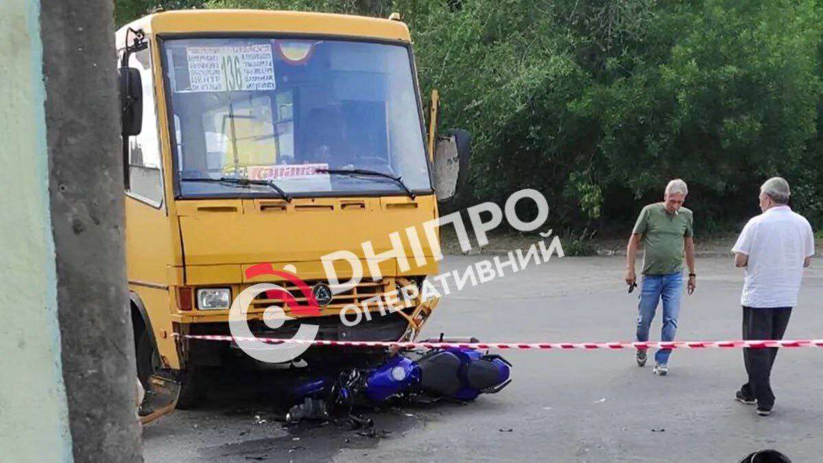 Как отметила в комментарии «Днепру Оперативному» пресс-секретарь Главного управления Национальной полиции в Днепропетровской области Анна Старчевская, авария произошла 14 июня во второй половине дня. По ее словам, в 17:07 поступило сообщение, что 21-летний водитель, управляя мотоциклом «Viper-250», двигался по проспекту Богдана Хмельницкого и выехал на встречную полосу движения. В результате чего столкнулся с маршрутным автобусом «БАЗ», который был без пассажиров. Автобусом управлял 63-летний мужчина, который в тот момент выезжал с парковочной площадки и совершал разворот, двигаясь справа налево (относительно направления движения мотоцикла).