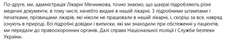Медицинский директор больницы Александр Толубаев обнародовал в соцсетях сообщение, в котором подтвердил, что в учреждении неоднократно находили поддельные документы со штампами и печатями Мечки. По его словам, все обнаруженные материалы передавали правоохранителям.