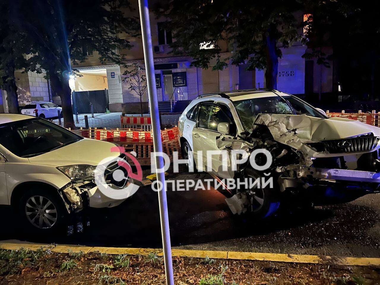 Инцидент произошёл 2 августа около 21:00. По предварительной информации, водитель автомобиля «Lexus» двигался на скорости по улице Дмитрия Яворницкого в сторону парка Шевченко и врезался в припаркованную «Acura». В результате столкновения первый автомобиль развернуло, и он совершил наезд на «Honda».