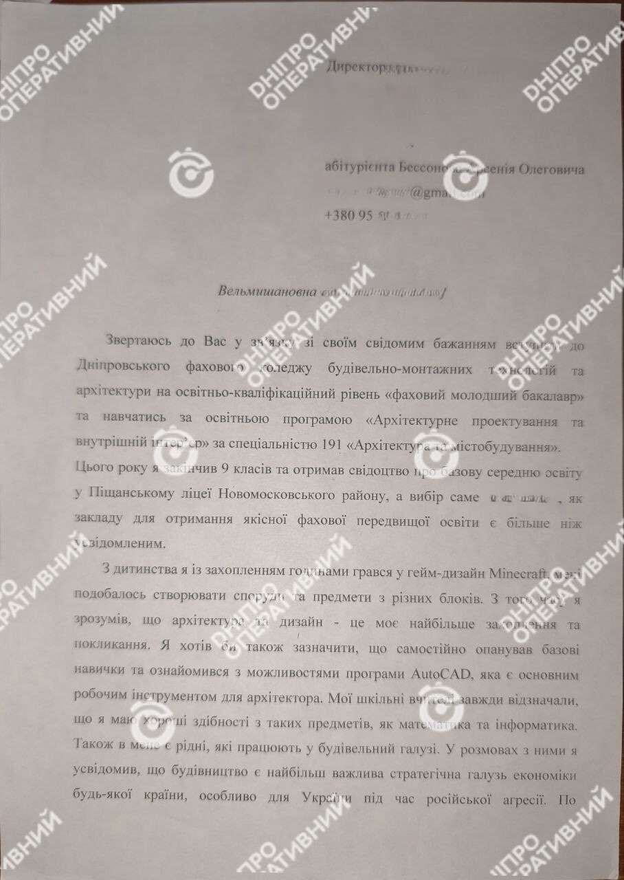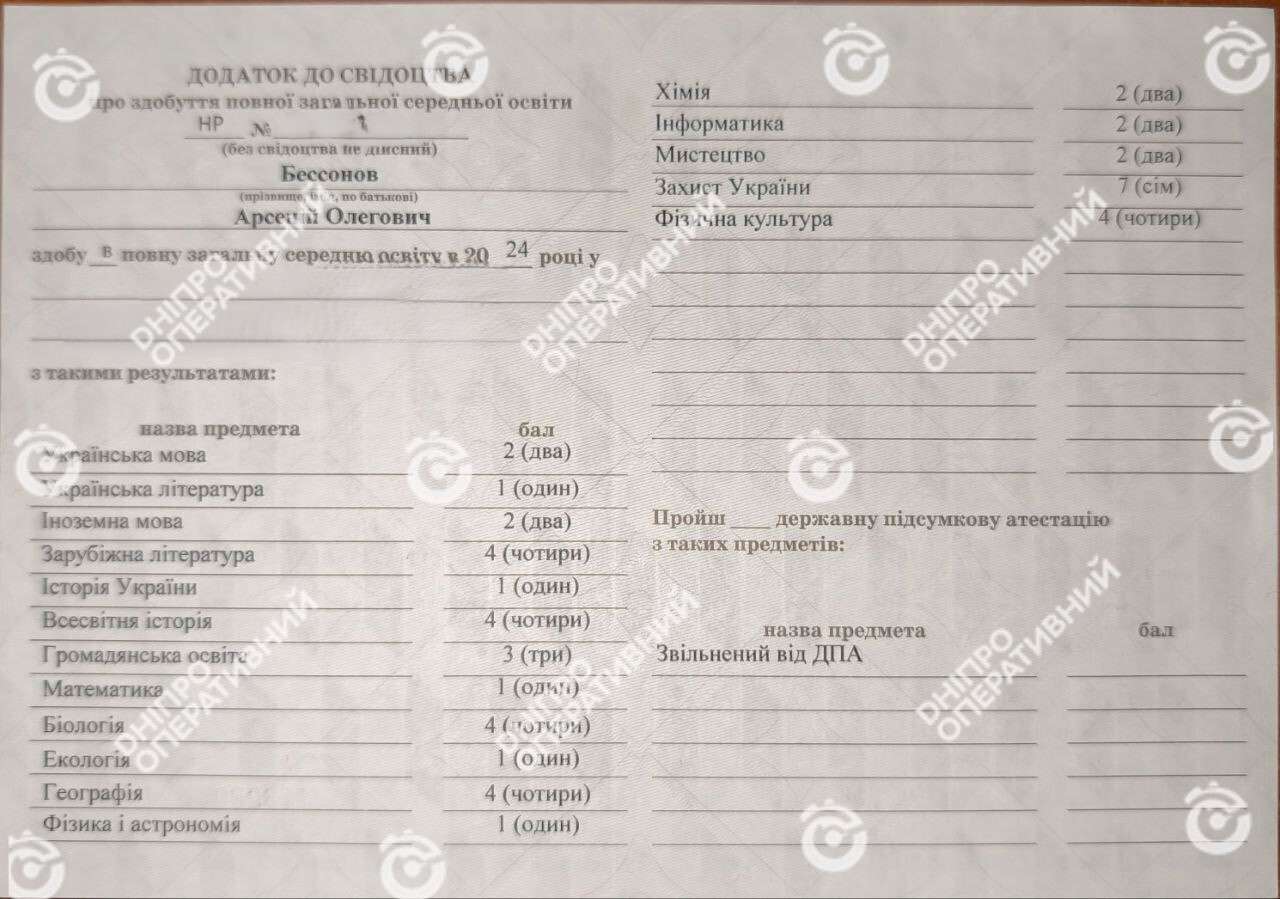 По данным из собственных источников наших журналистов, Бессонов Арсений Олегович родился 2 февраля 2007 года в городе Донецк, однако уже некоторое время проживает в одном из посёлков Самарского района Днепропетровской области. После окончания 9 классов в местном лицее начал обучение в одном из днепровских профессиональных колледжей. При поступлении в своём мотивационном письме он указал, что хочет стать архитектором и выразил желание помогать Украине восстанавливаться после российской агрессии.