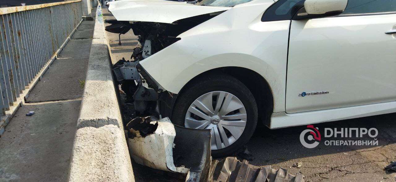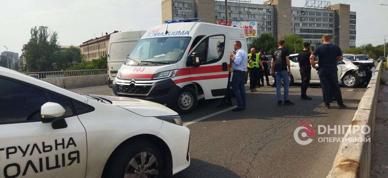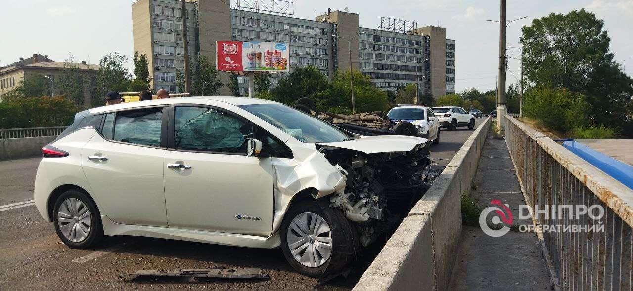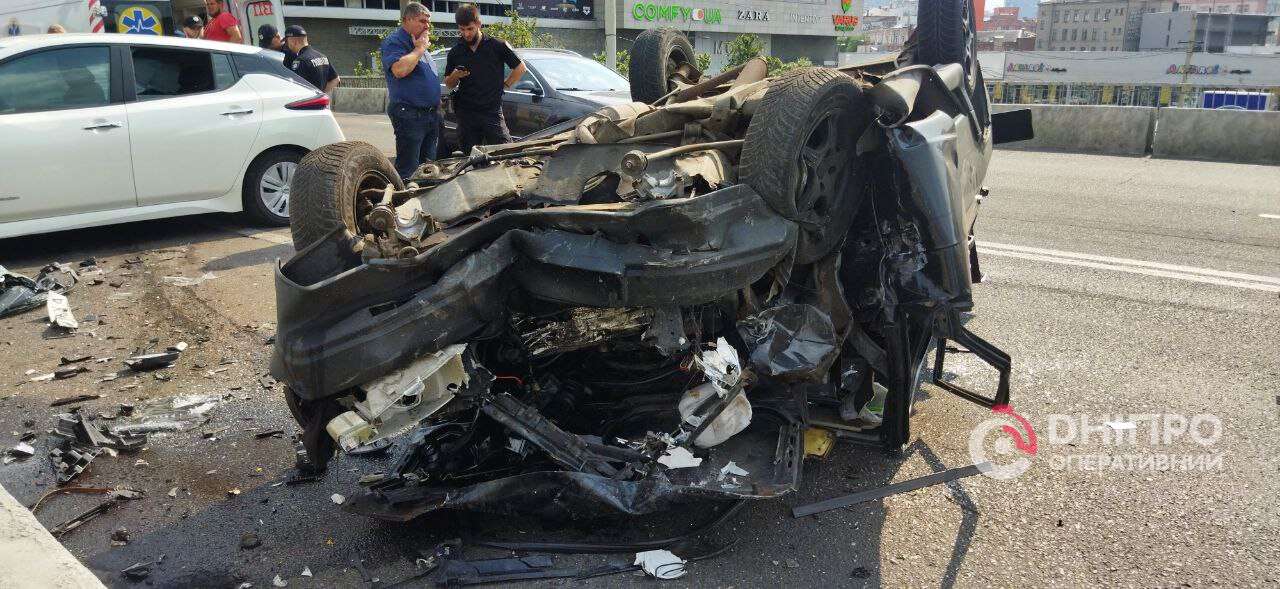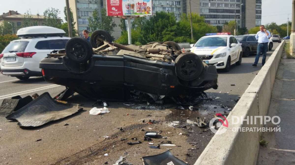 В Днепре на Новом мосту ВАЗ перевернулся на крышу после столкновения с Nissan: подробности