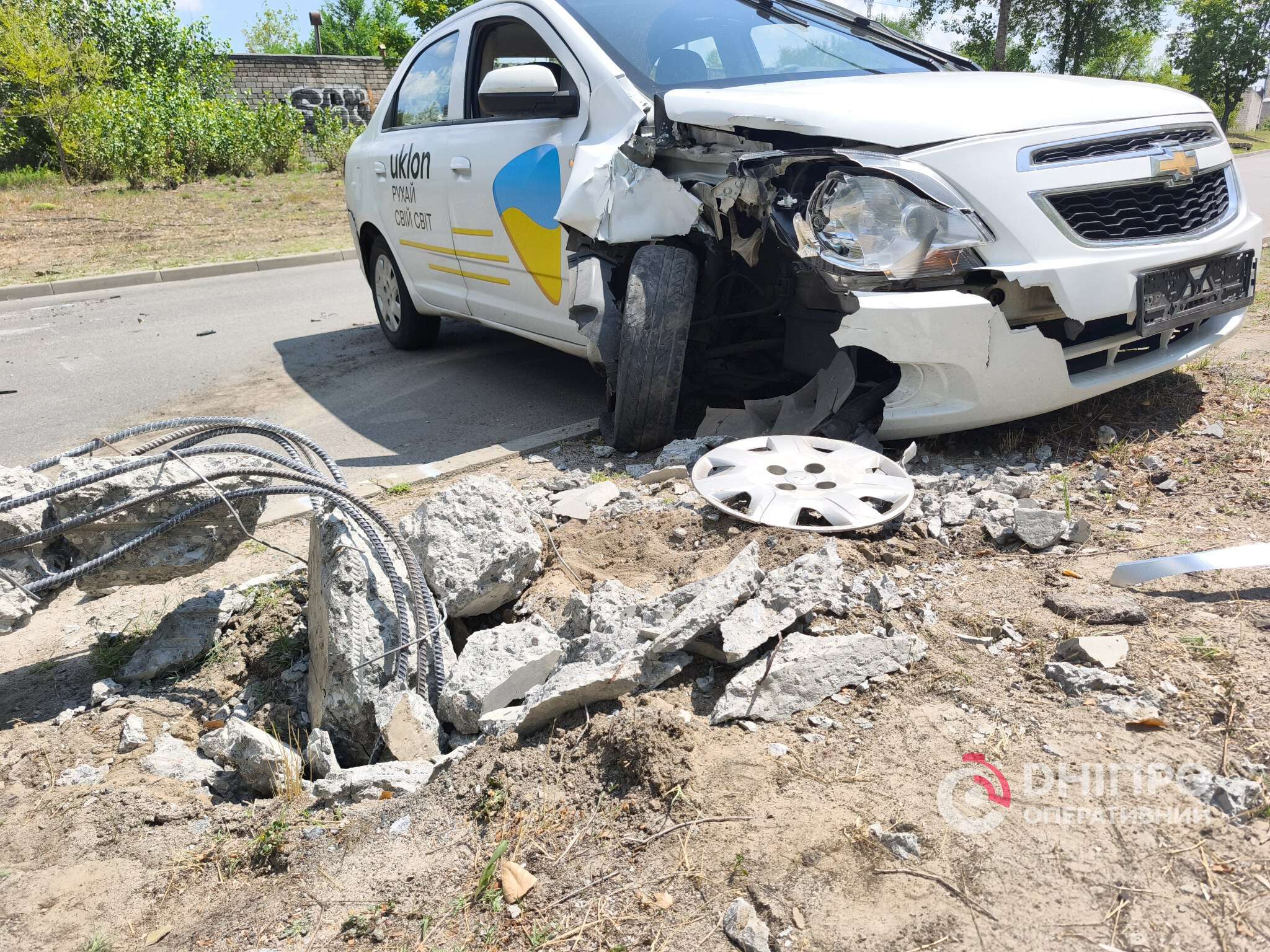 В Днепре на Зиновия Матлы такси снесло электроопору: подробности с места происшествия