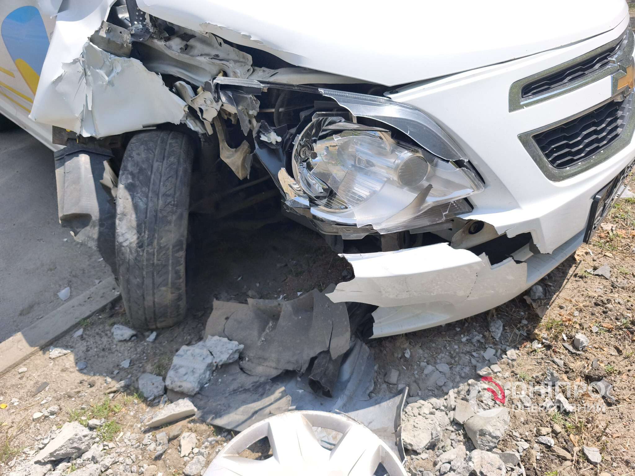По предварительной информации, Chevrolet двигался по улице Зиновия Матлы в направлении Донецкого шоссе. Во время движения у автомобиля лопнула шина, из-за чего водитель потерял управление и врезался в электроопору.