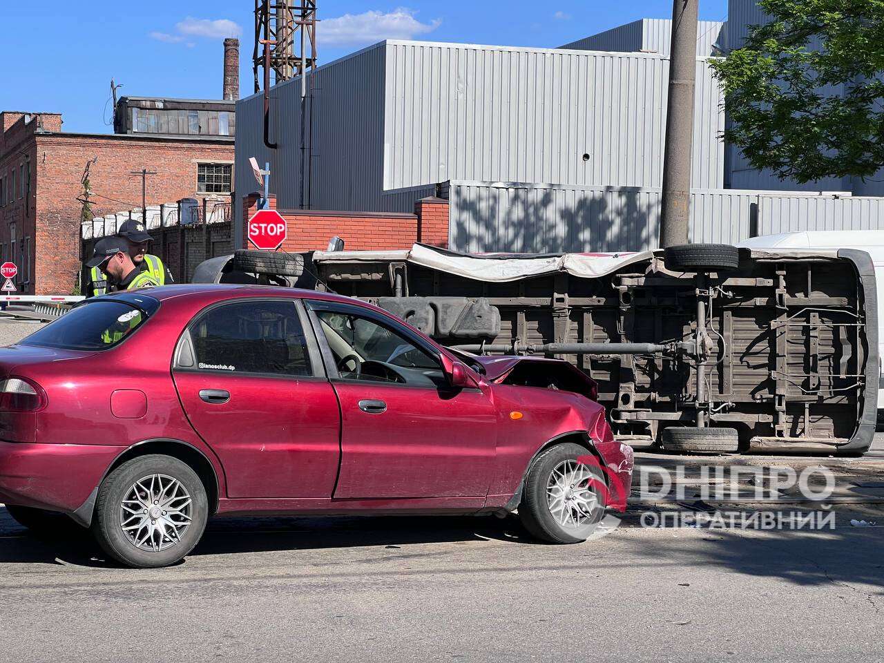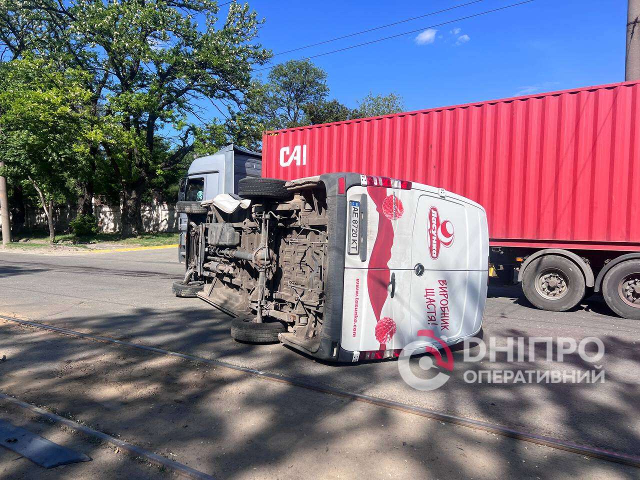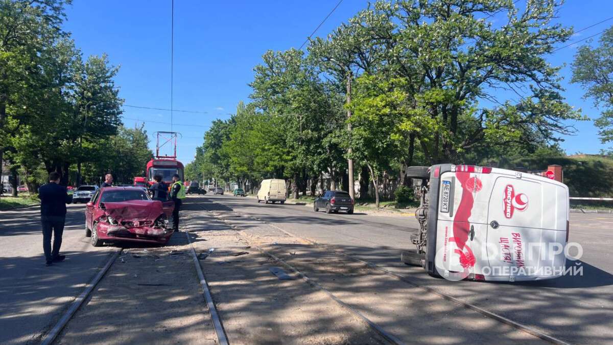 В Днепре в результате ДТП перевернулся микроавтобус: произошли изменения в движении трамваев