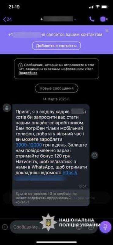 По данным правоохранителей, в одном из мессенджеров потерпевшей предложили подработку якобы от имени известного магазина: женщине нужно было выкупать товары с сайта, за что обещали хорошее вознаграждение. Сначала схема действительно выглядела убедительно - женщина получила небольшую выплату за «первые задания». Однако впоследствии ей предложили перевести 100 тысяч гривен якобы для увеличения дохода. После этого доступ к заработанным средствам заблокировали.