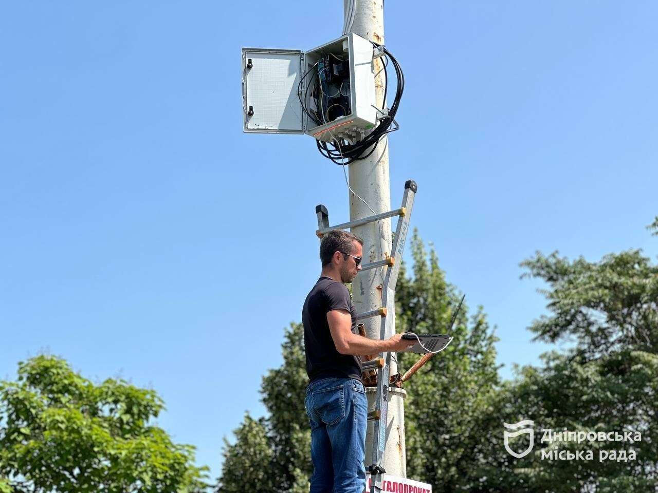 Як розповіла директорка КП «Інфо-рада-Дніпро» Альона Чуєва, для охоплення всієї території проклали 250 метрів оптоволоконного кабелю. Відеопотік у режимі 24/7 надходить до Ситуаційного центру міста й зберігається 30 днів. Оператори центру взаємодіють із патрульною поліцією для оперативного реагування.