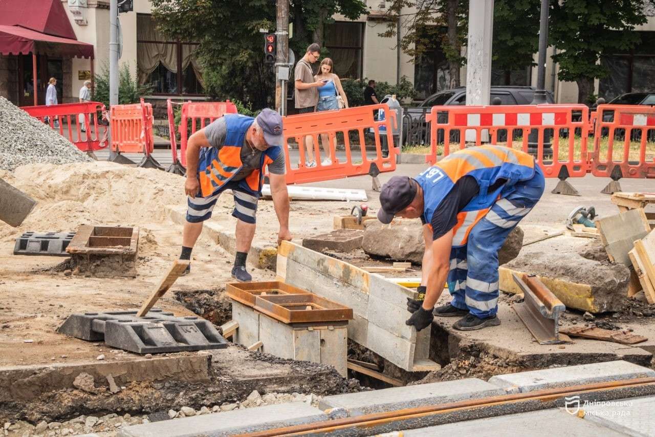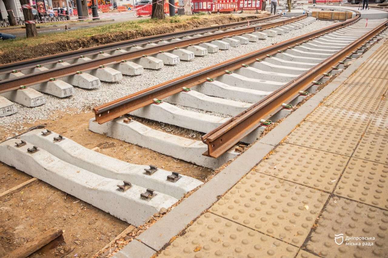 Також у місті вже замінюють трамвайні колії на маршруті №1 — адаптують під сучасні низькопідлогові вагони, які дозводять маломобільним людям пересуватися без обмежень. Перший з таких трамваїв має з’явитися у місті вже до кінця 2025 року. Роботи зараз тривають на перехресті проспекту Дмитра Яворницького, вулиць Володимира Мономаха та Короленка. Там укладають колії в широкосмугових залізобетонних плитах — усього заплановано встановити 118 плит. Завершити цей етап планують до 30 червня, після чого рух проспектом буде повністю відновлено.