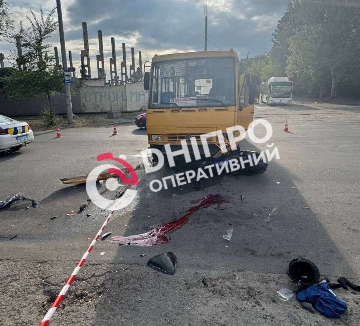 Смертельна ДТП у Дніпрі: мотоцикліст виїхав на зустрічку та врізався в маршрутку (Фото)