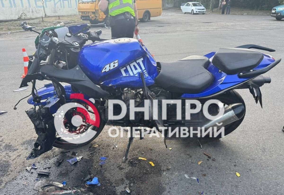 Як зазначила в коментарі "Дніпру Оперативному" речниця Головного управління Національної поліції в Дніпропетровській області Ганна Старчевська, аварія сталася 14 червня у другій половині дня. За її словами, 17:07 надійшло повідомлення, що 21-річний водій, керуючи мотоциклом «Viper-250», рухався по проспекту Богдана Хмельницького та виїхав на зустрічну смугу руху. В результаті чого зіткнувся з маршрутним автобусом "БАЗ", який був без пасажирів. Автобусом креував 63-річний чоловік, який в той момент виїжджав з паркувального майданчика і здійснював розворот, рухаючись зправа наліво (відносно напрямку руху мотоциклу).