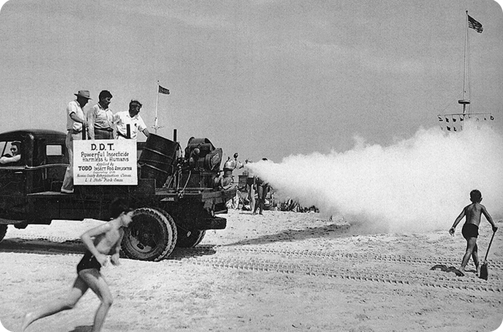 “Літаки АН-2, гусеничні танки-опилювачі, ранцеві обприскувачі — вся техніка працювала на ДДТ. Ліси, поля, дитячі табори, санаторії, дороги, колгоспи — все оброблялось, навіть під снігом”, - пише Дубровський.